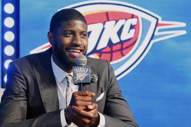 | Four-time All-Star Paul George, a free agent in 2018, is the newest member of the Thunder. (Sue Ogrocki/AP) |